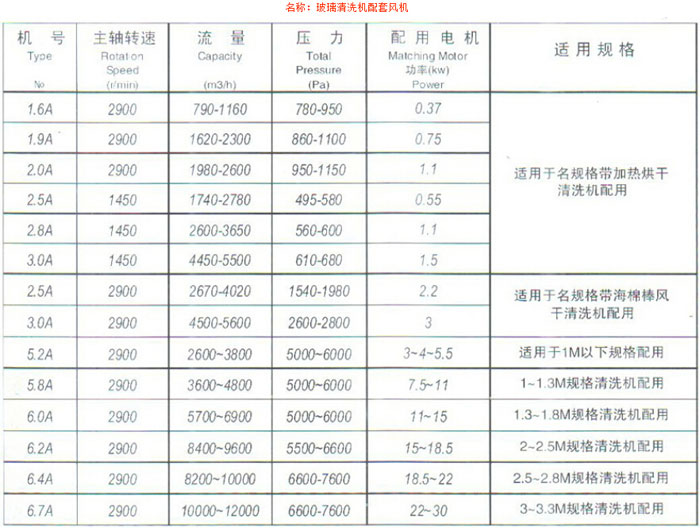 玻璃清洗機配套風(fēng)機 玻璃清洗機配套風(fēng)機詳細參數